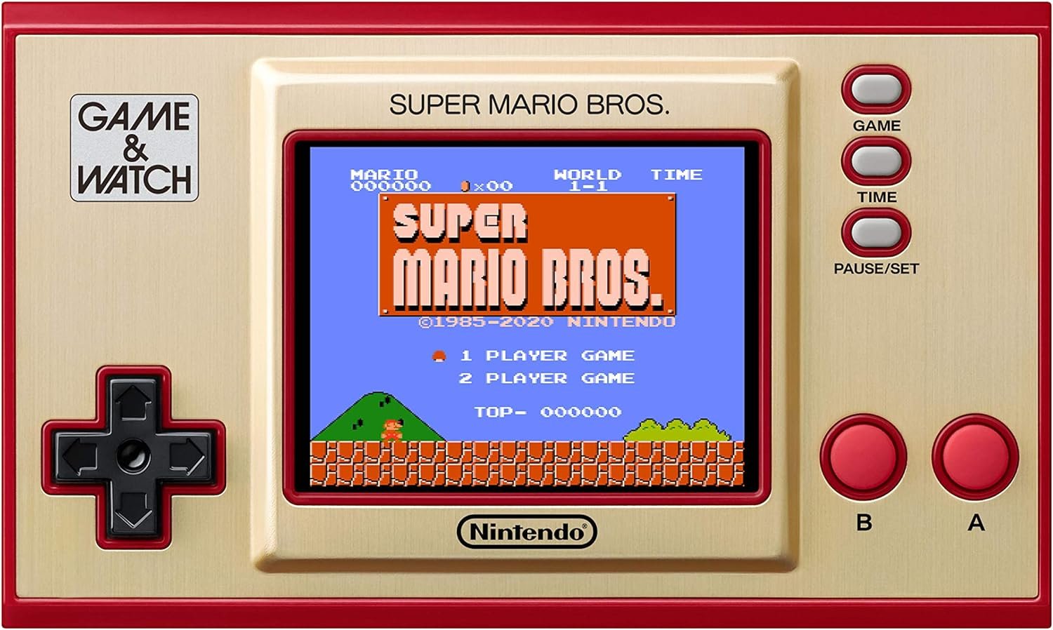 For the plumber’s 35th birthday, Nintendo has released a very special Game & Watch in the Mario edition (view on Amazon). This stylish little console includes the first two Mario adventures as well as a ball mini-game. The console can also be used as a digital clock.