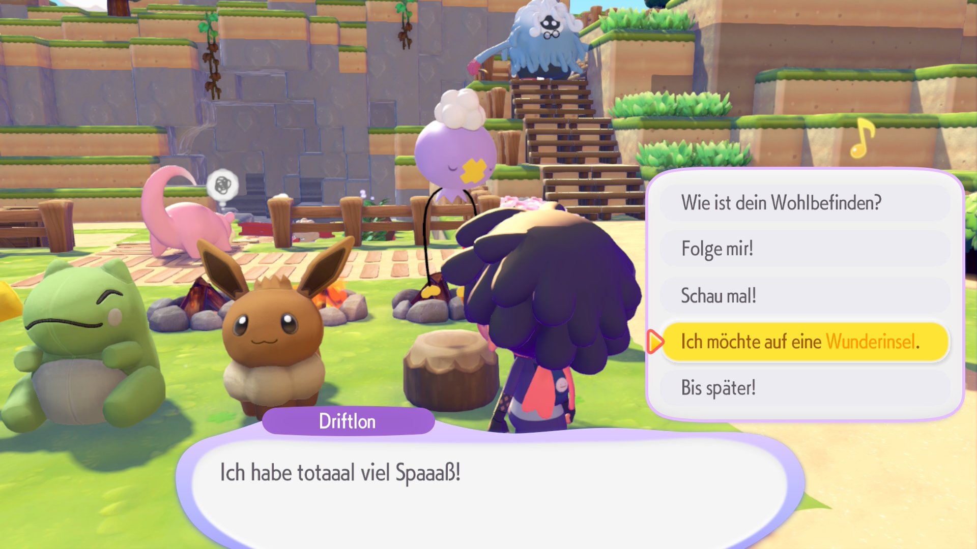 Place the respective plush anywhere and show it to Driftlon. Either place the plush toy near the Balloon Pokémon or let Driftlon follow you and bring it to the plushie. You will be taken to Wonder Island, where you will find legendary Pokémon such as Suicune, Entei or Raikou.